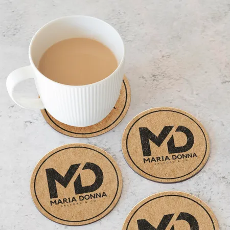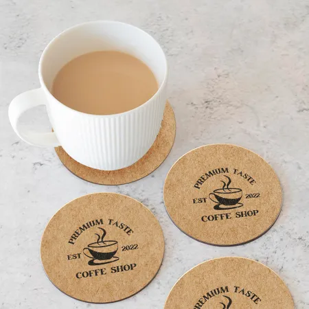 Custom coasters can be made from various materials, including cork, kraftpaper, leather, acrylic . Cork and kraftpaper provide a natural and elegant look, while acrylic offer durability and a modern appearance. The material chosen affects the coaster's texture, durability, and aesthetic appeal.